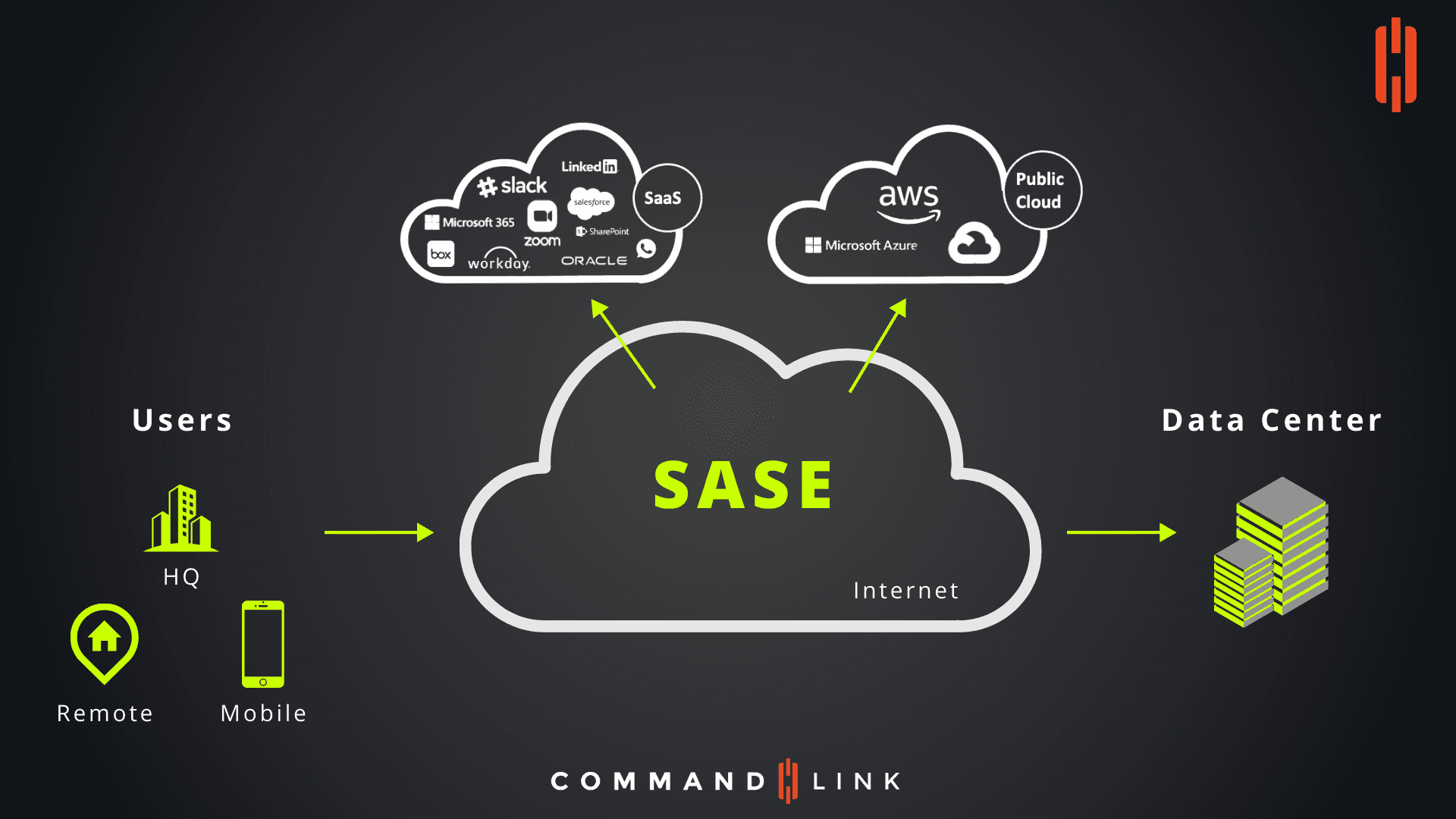 SASE enables users, whether they are working from headquarters, remotely, or via mobile devices, to seamlessly and securely connect to cloud services and data centers. By utilizing SASE, organizations can offer consistent and secure access to essential tools like SaaS applications (e.g., Microsoft 365, Slack, Zoom) and public cloud platforms (e.g., AWS, Microsoft Azure) without compromising performance or security.
