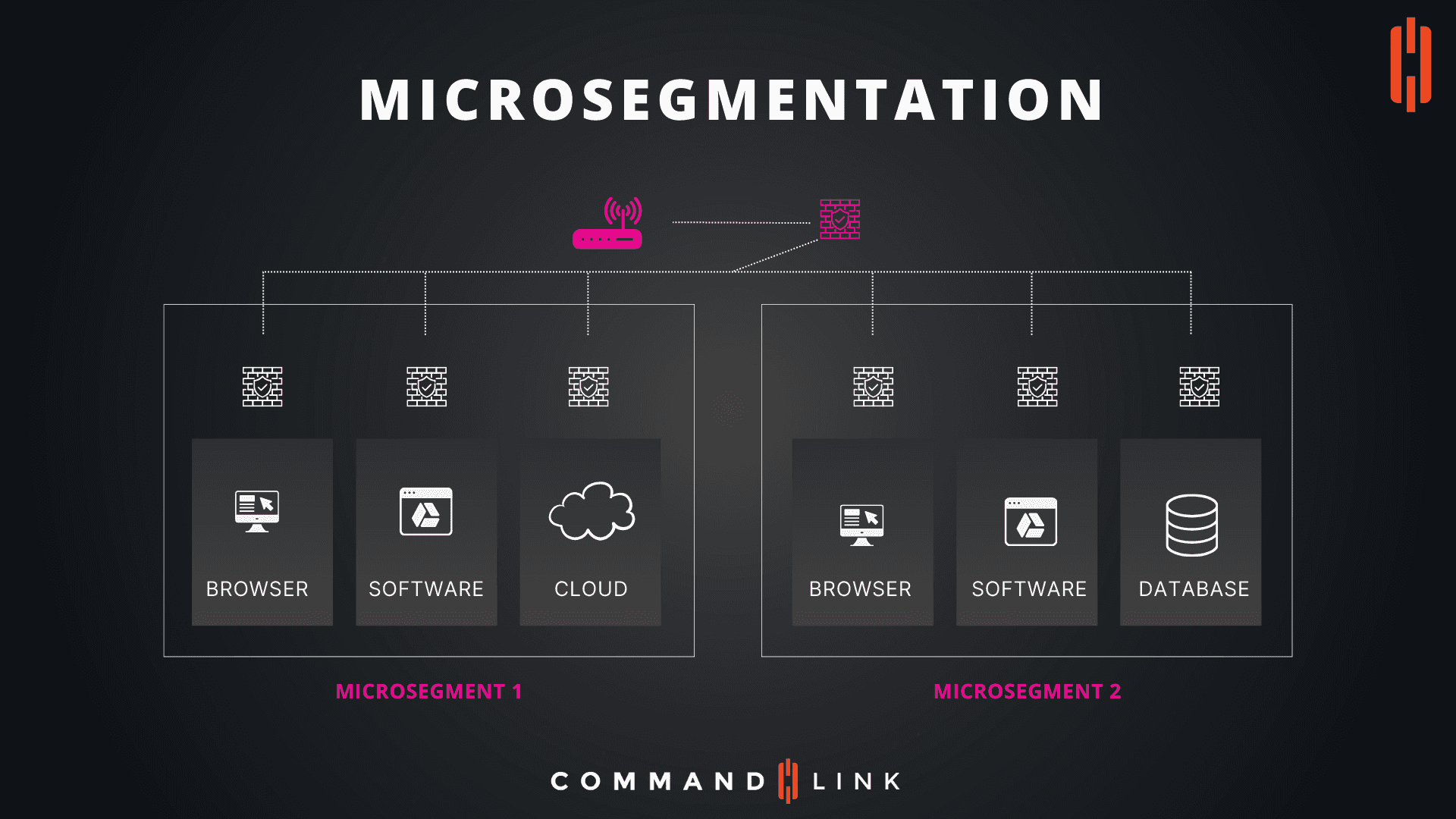 Function: The connectivity between microsegments is tightly controlled and monitored. Any communication between microsegments must pass through security controls that enforce the policies governing that interaction.