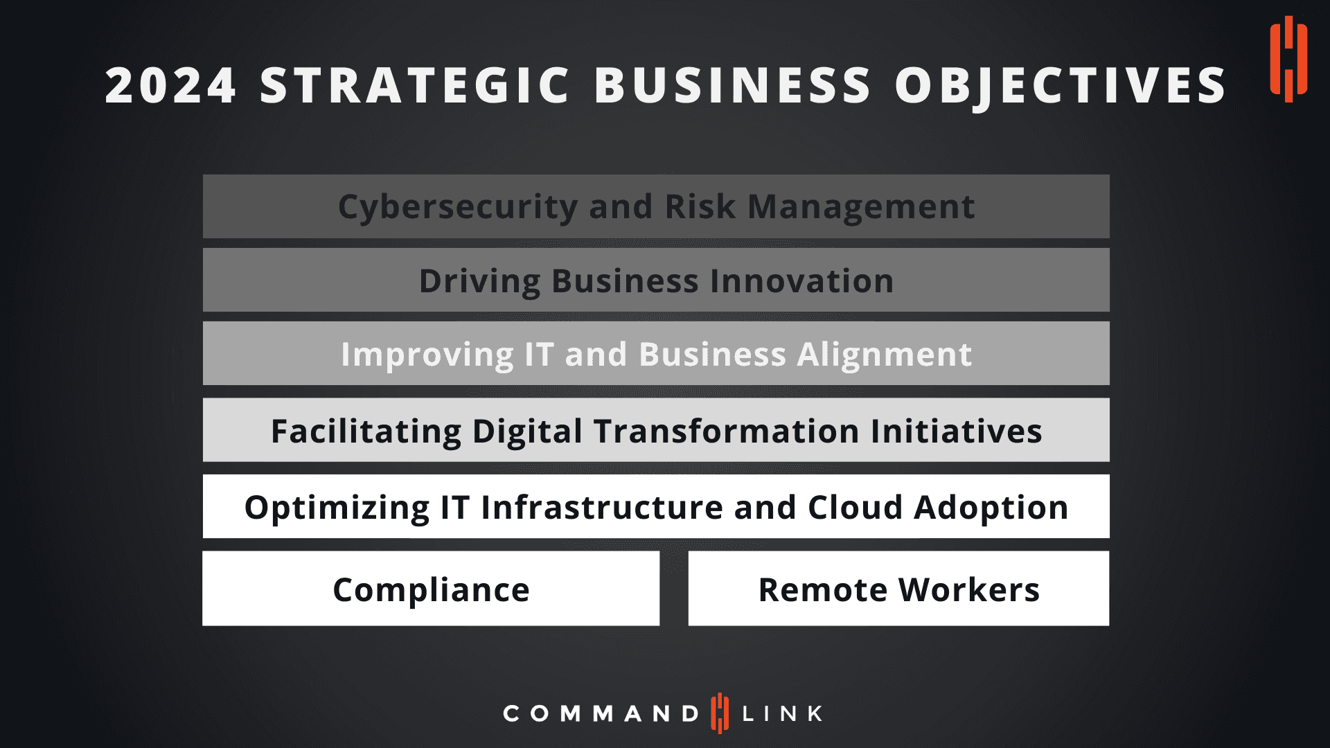 The strategic business objectives for 2024 reflect the challenges and opportunities that lie ahead. By prioritizing cybersecurity, driving innovation, aligning IT with business goals, accelerating digital transformation, optimizing IT infrastructure, ensuring compliance, and supporting remote workers, organizations can position themselves for success in a rapidly changing landscape. These objectives not only address immediate needs but also lay the foundation for long-term growth and resilience in an increasingly digital world.
