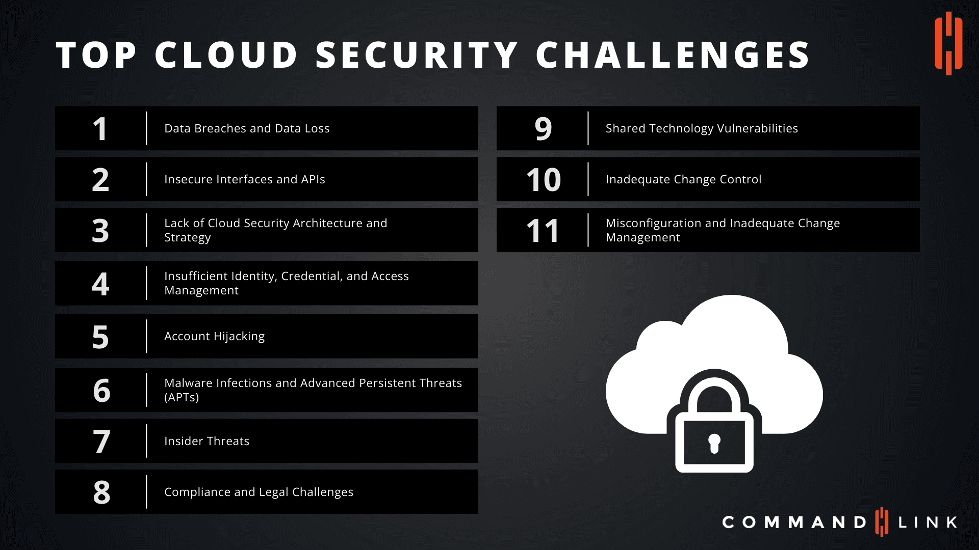 Insufficient identity, credential, and access management (ICAM) is a significant security challenge in the cloud. Poorly managed credentials and identities can lead to unauthorized access, account hijacking, and data breaches. Implementing multi-factor authentication (MFA), enforcing strong password policies, and regularly reviewing access permissions can help mitigate these risks. Proper ICAM ensures that only authorized users have access to cloud resources, reducing the likelihood of security incidents.
