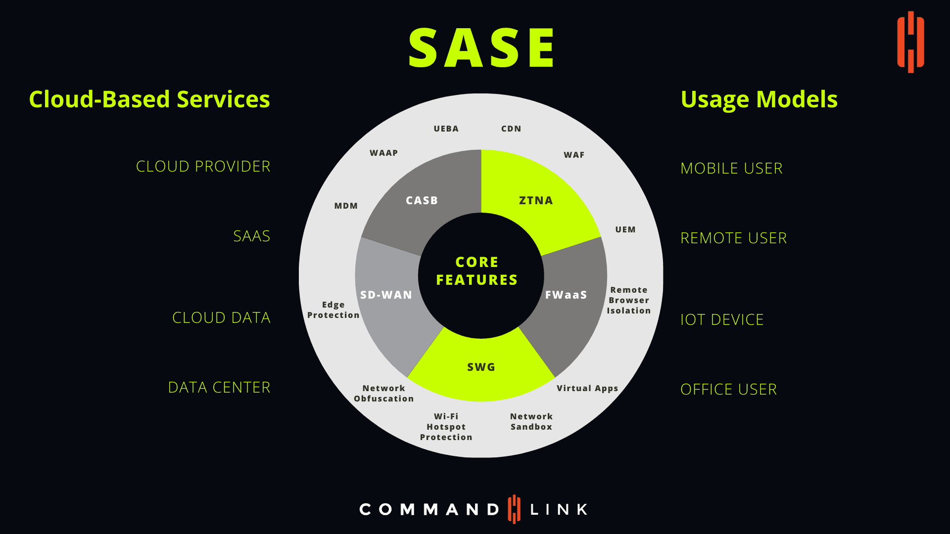 SASE is uniquely positioned to support a wide range of usage models, from mobile users to remote employees, IoT devices, and traditional office users. With ZTNA, SASE enforces strict access controls, ensuring that only authenticated users and devices can connect to the network, regardless of their location. SWG and FWaaS add additional layers of protection, filtering web traffic and guarding against threats, while SD-WAN ensures that all users experience consistent, high-performance connectivity. Whether users are accessing the network from a remote location, on the go, or from within the office, SASE provides a secure and optimized experience.