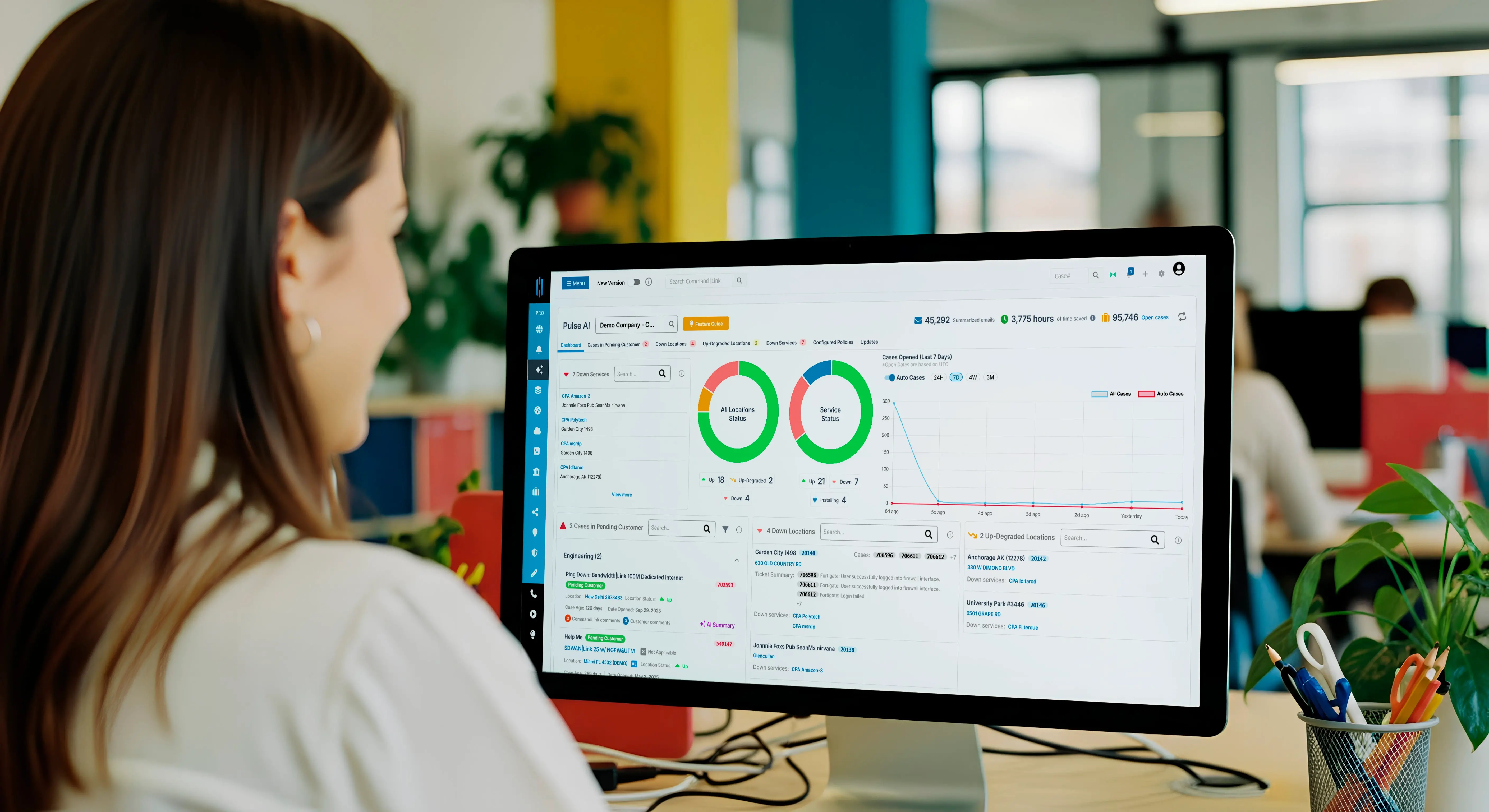 Track WAN health (bandwidth, latency, packet loss) and device health (CPU, memory—temperature coming soon). Correlate it with security signals like logins, credential misuse, and lateral movement. Get cross-system, context-rich insights in minutes, not timelines stitched together across ISP, network, and security portals.