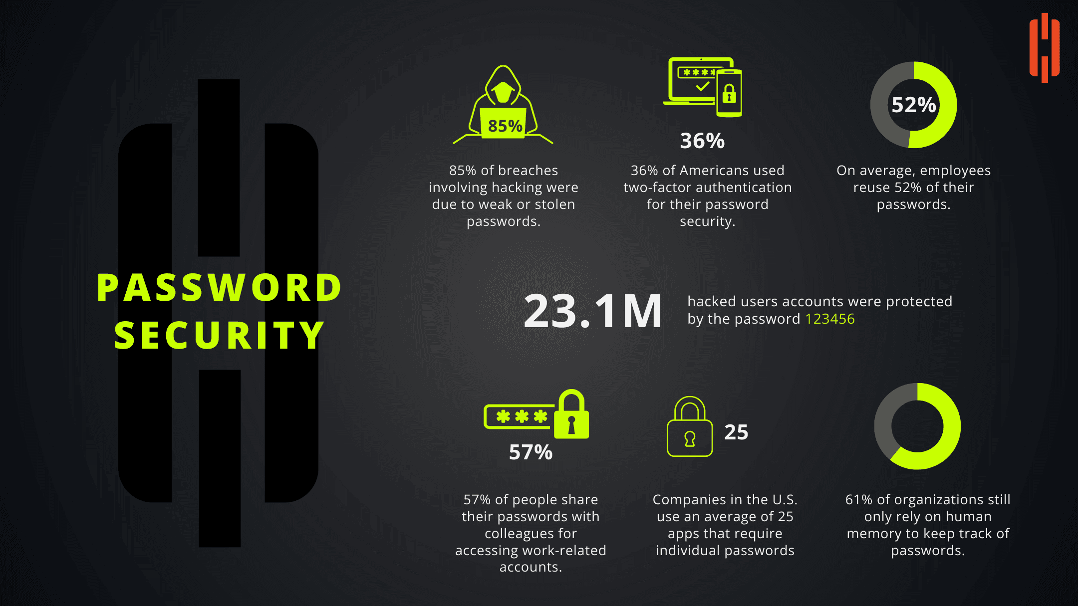 Reliance on Memory Over Security 61% of organizations still rely solely on human memory to keep track of passwords, disregarding the use of password managers or other secure technologies.